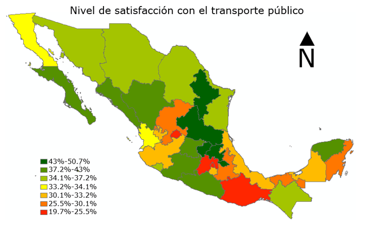 Actualmente, en la mayoría de los estados, así como a nivel nacional, el nivel de satisfacción con el transporte público creció, aunque para mantener una relación coherente entre esta encuesta y el resto de los datos analizados se tomó como referencia la Encuesta de Satisfacción con el Servicio de Transporte Público Automotor 2015, año en que se realizaron el resto de los documentos aquí analizados.