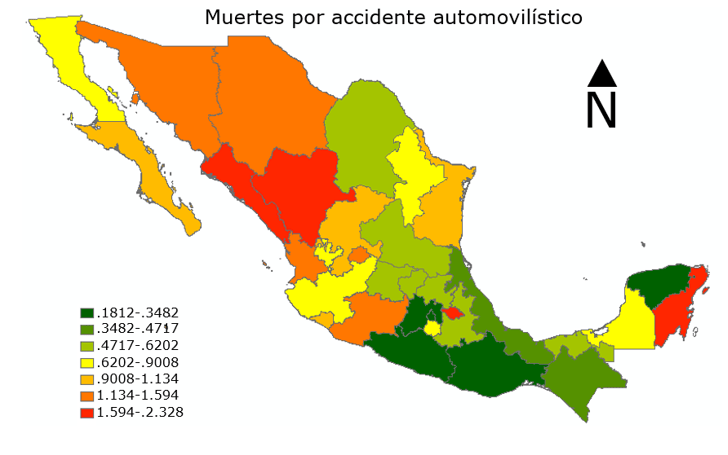 Se generó mediante la aplicación de las muertes a causa de accidentes automovilísticos y la población total por entidad obteniendo los siguientes resultados: